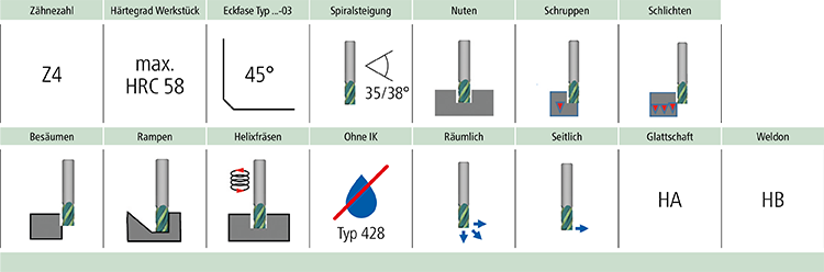 HPC-Schaftfräser ohne Innenkühlung, mit Eckfase